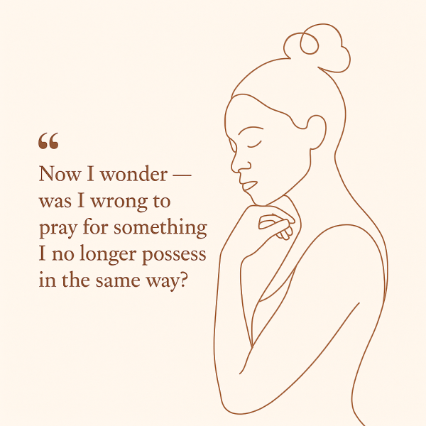 These days, I often find myself surrounded by people of faith who speak as though nothing has changed — friends who make biblical references in conversation, assuming we are in agreement. I don’t have the heart to correct them. How do you say I don’t know anymore to people who still pray the way you once did together? I used to pray for their faith, asking God to strengthen them. Now I wonder, was I wrong to pray for something I no longer possess in the same way?