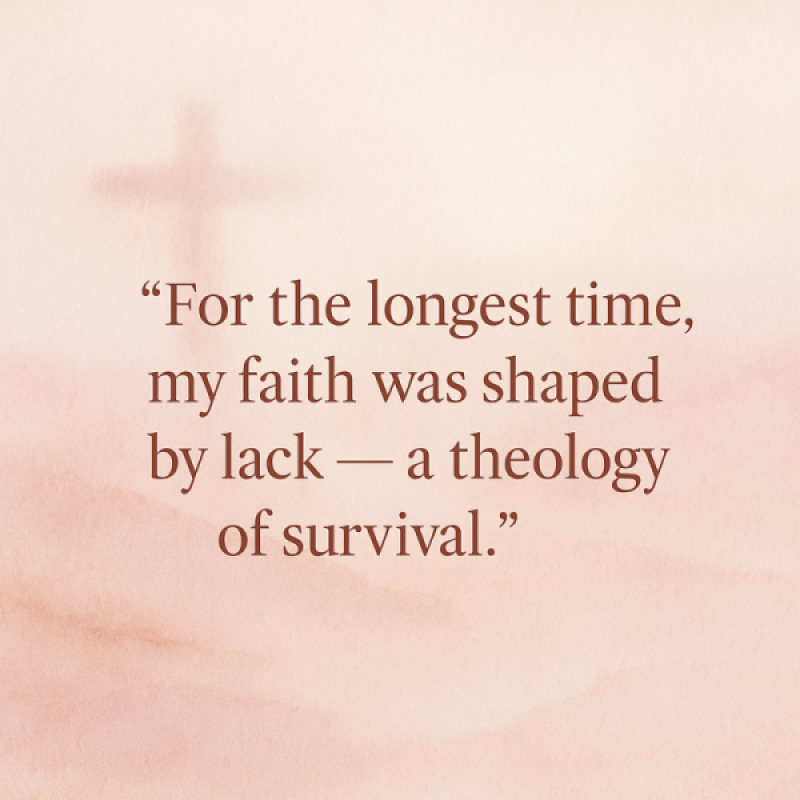 For the longest time, my relationship with God was shaped by lack, a theology of survival. I prayed not because I was overflowing with gratitude but because I needed something: provision, healing, a way out. I now see how poverty can shape your understanding of faith, how religion, for many of us, becomes less about worship and more about relief. Faith promises a better world when the one you live in feels unbearable.
